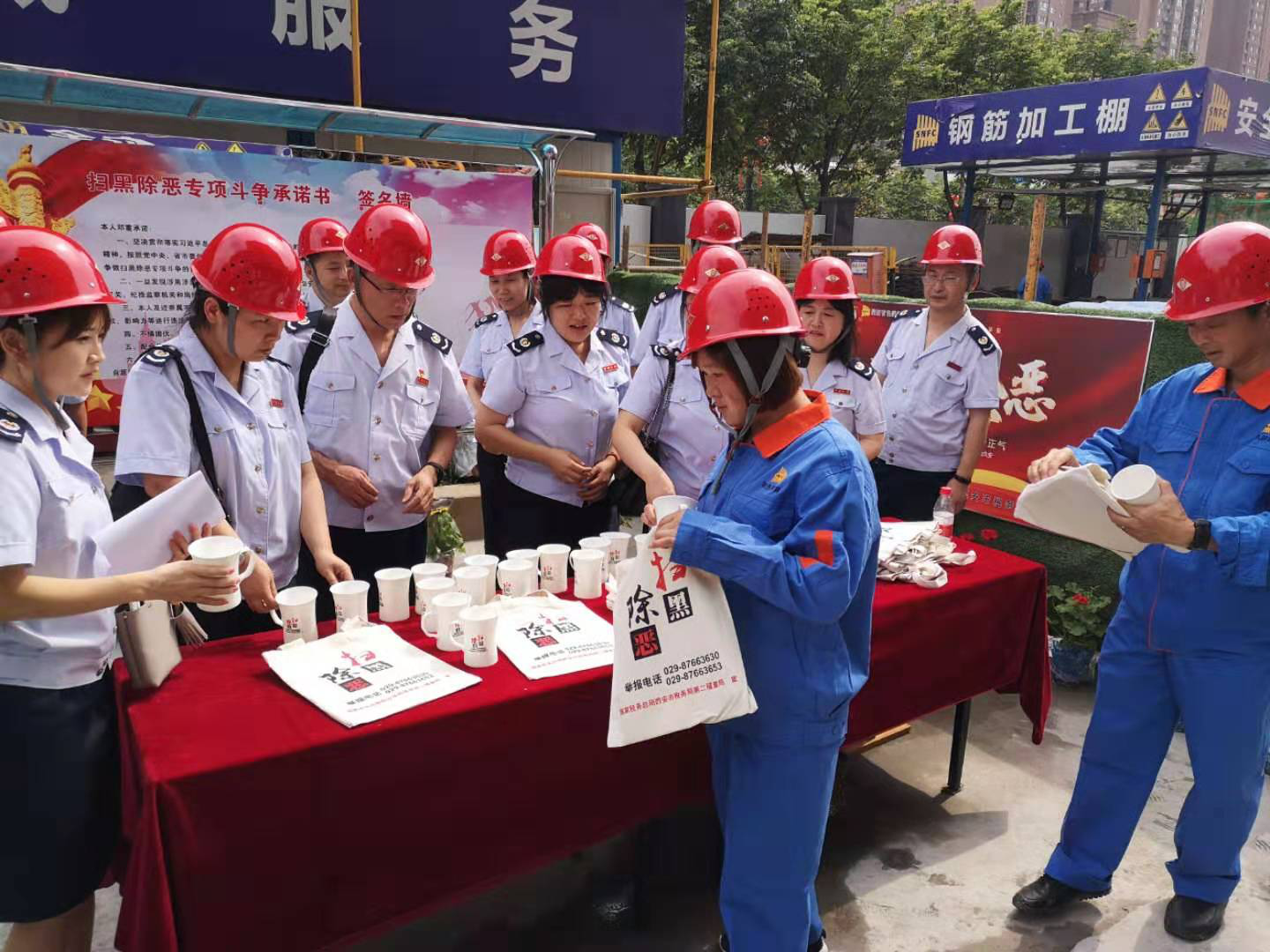 近日,西安市稅務(wù)局第二稽查局和我公司在西安鵬潤悅秀城二期2.1標段項目部聯(lián)合舉行以“稅企聯(lián)動、掃黑除惡”為主題的宣傳活動,西安市稅務(wù)局第二稽查局副局長宋曉軍、公司總經(jīng)理楊明鈺、總會計師陳毓等兩家單位有關(guān)領(lǐng)導及項目施工管理人員參加了本次活動。